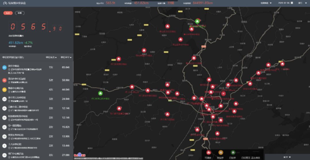 ↑垃圾收運儀表盤,顯示(shì)各中(zhōng)轉站收運垃圾量的詳細信息。